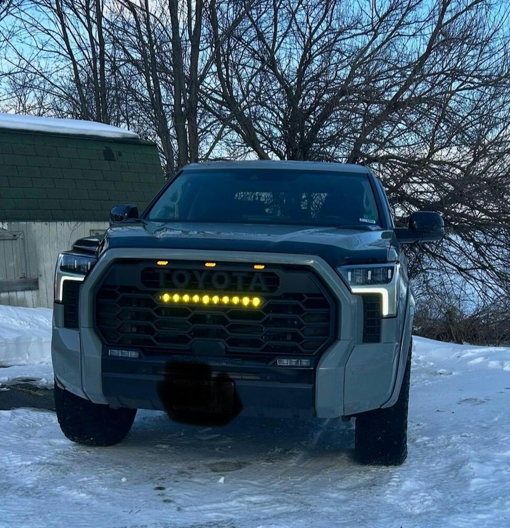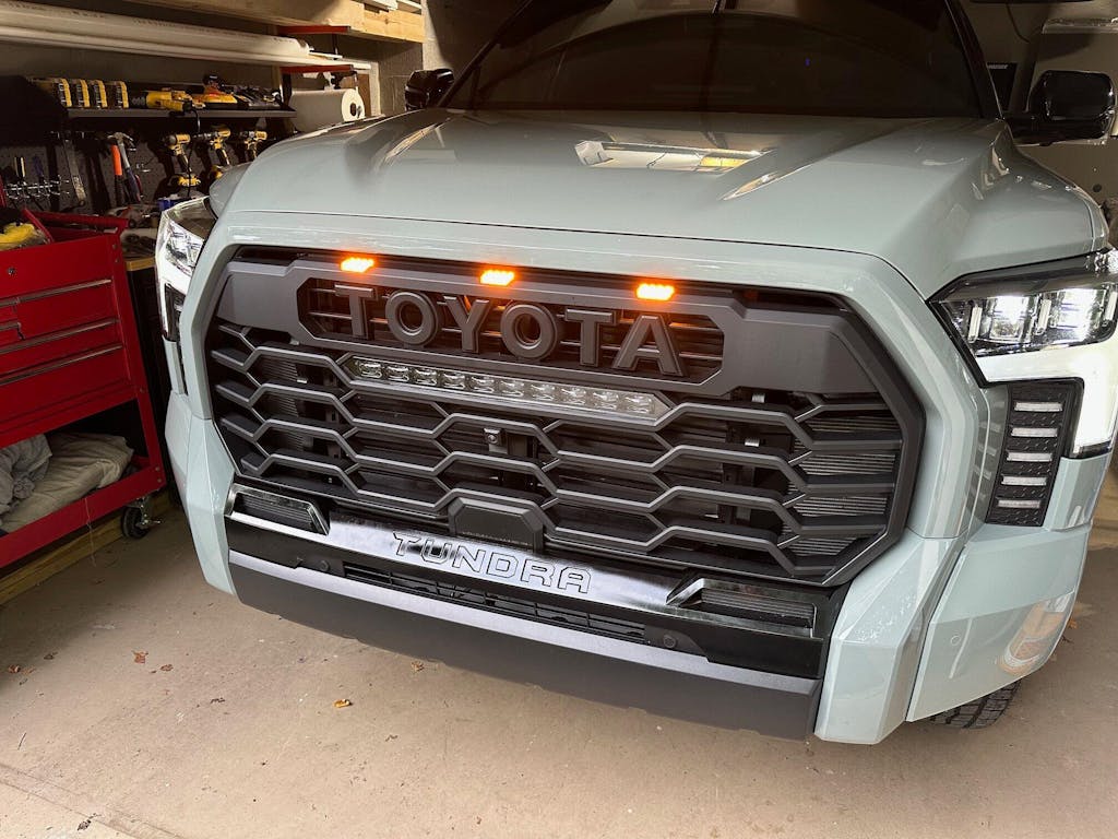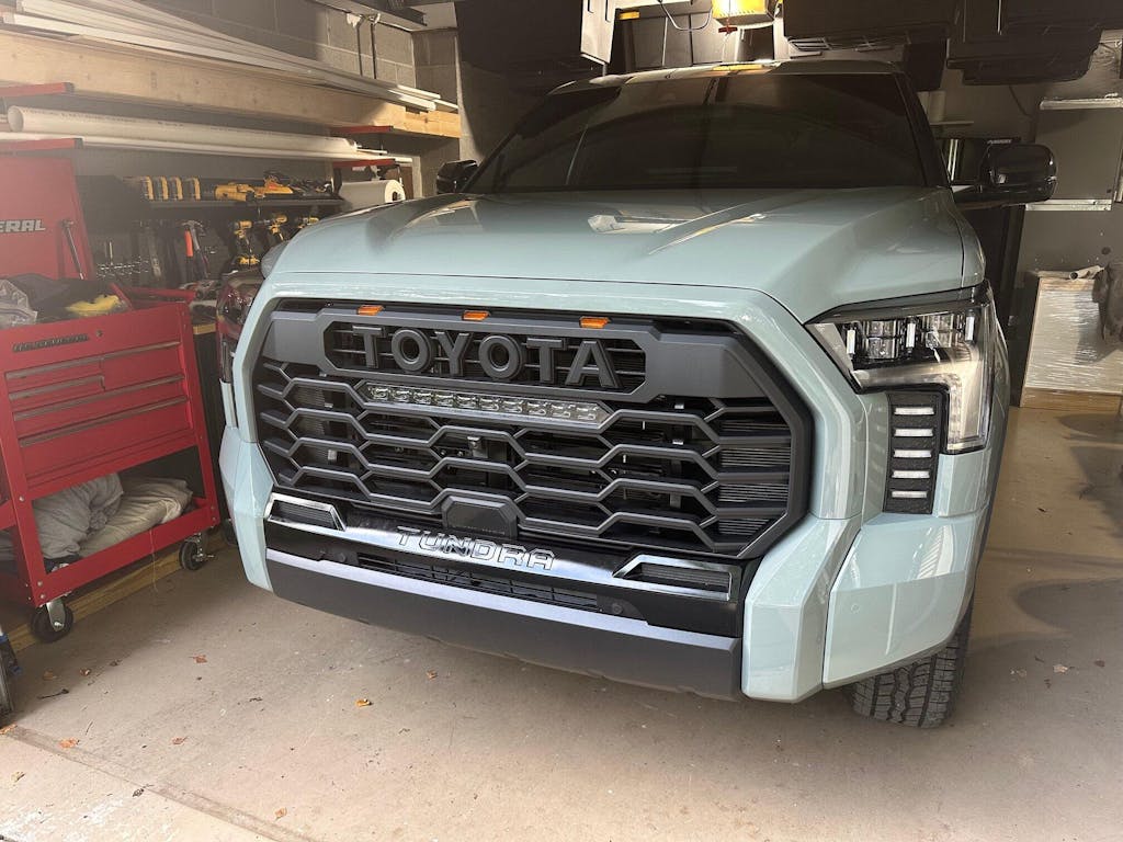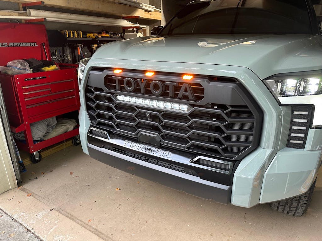 - Matte Black Finish: The grille comes in a sleek matte black finish that complements any color Tundra, offering a stealthy and modern look that stands out from the factory grille.