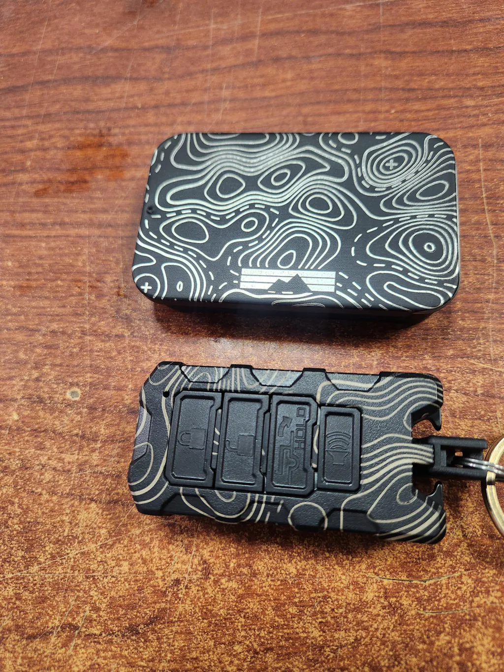 The Topo finish is laser engraved onto the case and the color of the Topo lines is dependent on the case material. This means we cannot control the Topo lines color and the color shown is what you will receive, there is not custom Topo line color option. Topo line color could change based on the amount of UV light the key is exposed to. Due to the nature of the engraving process, there is a small chance of minor imperfections such as slight runoff or small pitting may be present. These are not defects and do not affect the performance or integrity of the product. They are a normal and expected part of applying this finish and contribute to the individuality of each item.